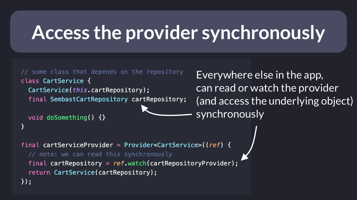 It may be tempting to use a FutureProvider and just return SembastCartRepository.withDefaultDB().